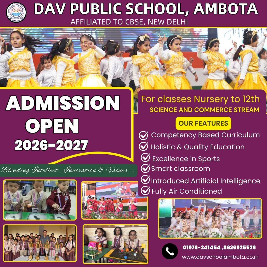 Thirty five years ago, a dream was dreamt. The dream of setting up a D.A.V. School in Ambota Distt. Una Himachal Pradesh, The dream has turned into reality and DAV Sr. Sec. Public School came into being 25 years back.The school is affiliated to the Central Board of Secondary Education,New Delhi.